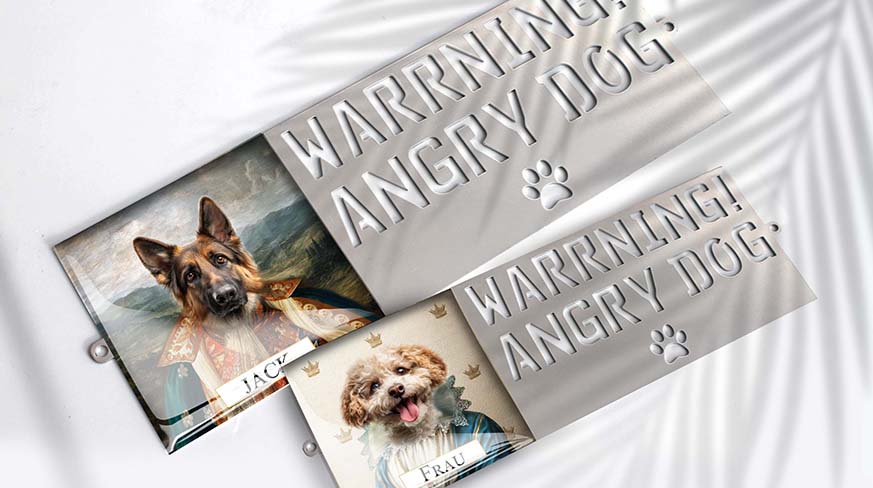 Personnalisez votre panneau avec le nom de votre chien ou un texte personnalisé ainsi qu'une photo de votre choix. De nombreuses options de design sont disponibles - choisissez entre un chromé élégant ou un noir élégant pour mettre en valeur votre style.