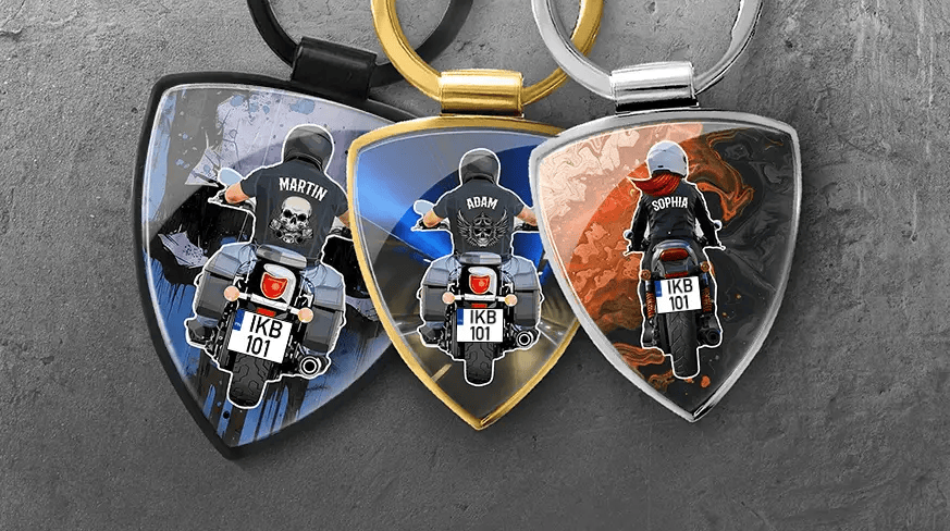 Din anpassade nyckelring för motorcykelförare skickas inom 3 arbetsdagar.